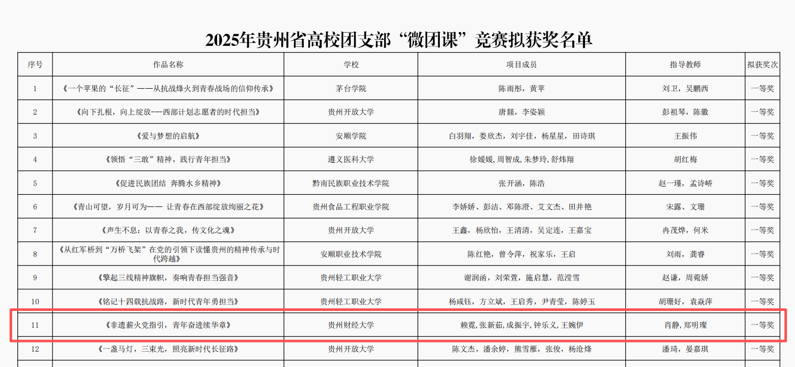 热烈祝贺i米体育 2024级研究生团支部荣获2025年贵州省高校团支部“微团课”竞赛一等奖!