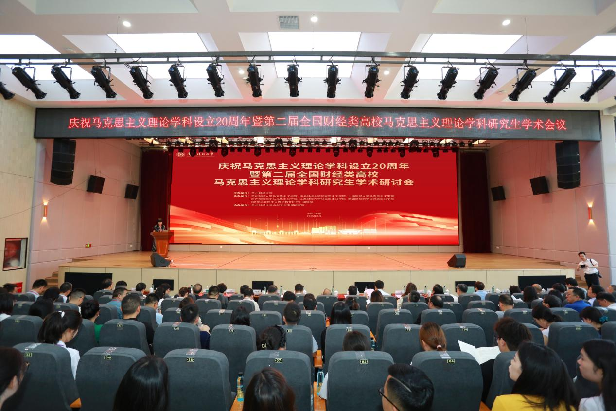 7月6日,由贵州财经大学主办,i米体育 、中央财经大学i米体育 、上海财经大学i米体育 、对外经贸大学i米体育 、江西财经大学i米体育 、新疆财经大学i米体育 、《高校马克思主义理论教育研究》编辑部承办,贵州财经大学乡村文化发展研究院协办的“庆祝马克思主义理论学科设立20周年暨第二届全国财经类高校马克思主义理论学科研究生学术研讨会”在贵州财经大学东区文津报告厅召开。中共贵州省委教育工作委员会副书记李军、贵州财经大学党委书记缪坤和、黔南民族师范i米体育 校长欧阳恩良、贵州财经大学党委副书记彭洁、遵义师范i米体育 党委副书记周晶,新疆财经大学党委常委、党委宣传部部长吴蕾,贵州财经大学副校长、党委委员曾宇航,贵州省教育厅思政处处长王晓红,以及来自全国7所财经类高校i米体育 负责人出席开幕式,开幕式由彭洁主持。来自全国10余家财经类高校和其他院校的i米体育 院长、导师和硕博研究生代表参加研讨会。
