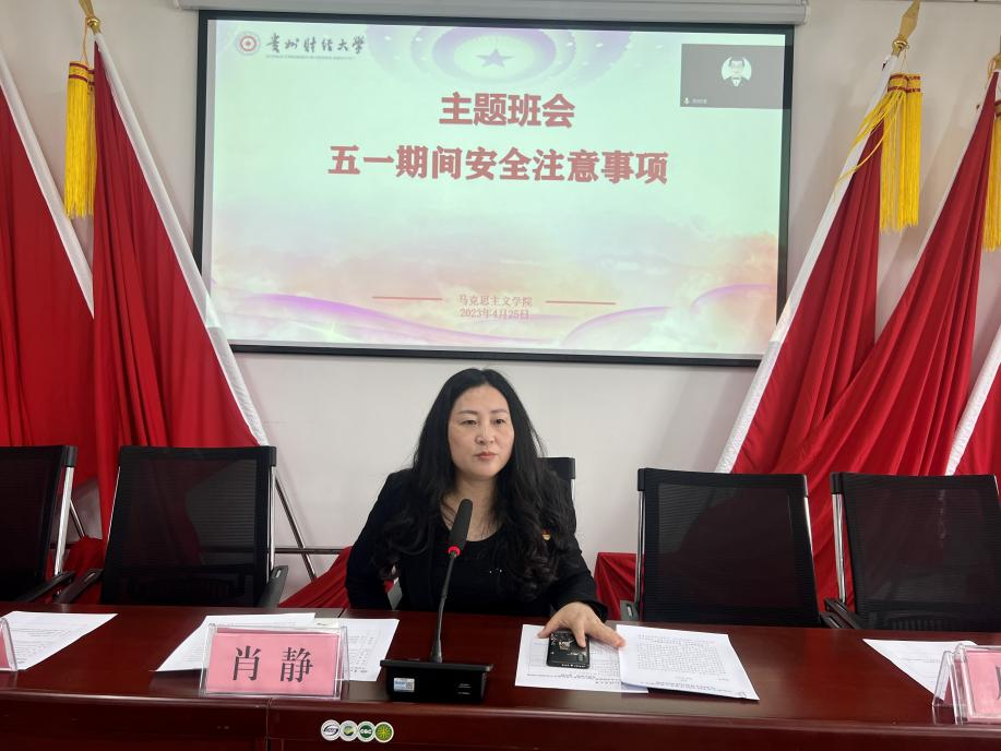 最后,五一假期即将来临,也是再次对五一期间的安全事项,提出了几点要求:一是要防火防盗、防溺水、防电信网络诈骗和食物中毒等方面的教育,二是寝室卫生,违规电器不能使用,三是不能下河游泳,人身财产安全,不要存在侥幸心理,要自觉维护社会与校园的和谐稳定。四是强调假期学习、生活、旅游、运动等方面安全工作的注意事项及相关纪律要求。